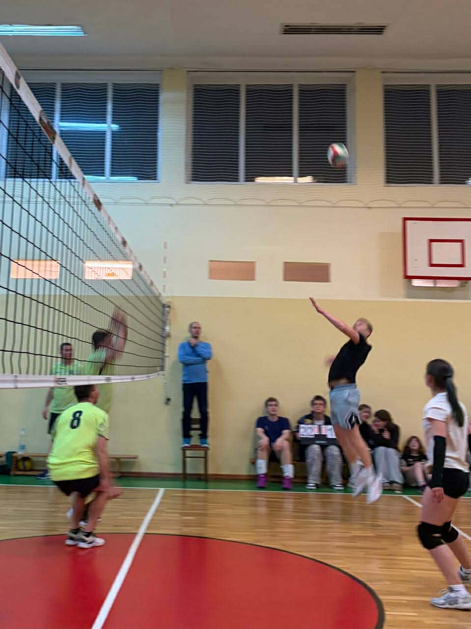 Pierwszy set rozpoczął się zgodnie z planem Łuszczowa. Dzięki skutecznym zagrywkom Małgorzaty Wieleby zespół szybko objął prowadzenie 8:3, a uporządkowana gra i błędy Chaosu pozwalały kontrolować przebieg seta. Przy stanie 23:16 wydawało się, że wszystko jest już rozstrzygnięte. Wtedy to, Oleksandra Halai (nasza wspaniała fotoreporterka KLEM-LIGI) rozpoczęła pogoń na zagrywce i przy doskonałej dyspozycji Luki Kythiuka i Mykyty Zyiki doprowadziła do wyniku 24-23. Decydujące uderzenie wykonał Kamil Mroczkowski i Chaos niesiony ogromnym dopingiem miejscowych uczniów z pobliskiego internatu wygrał 26-24 pierwszego seta.