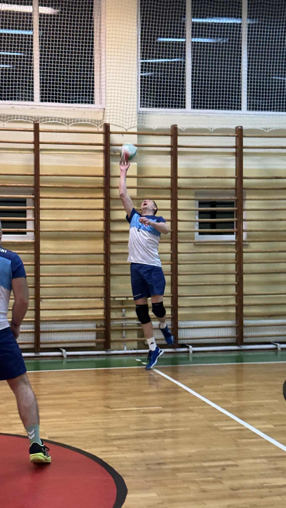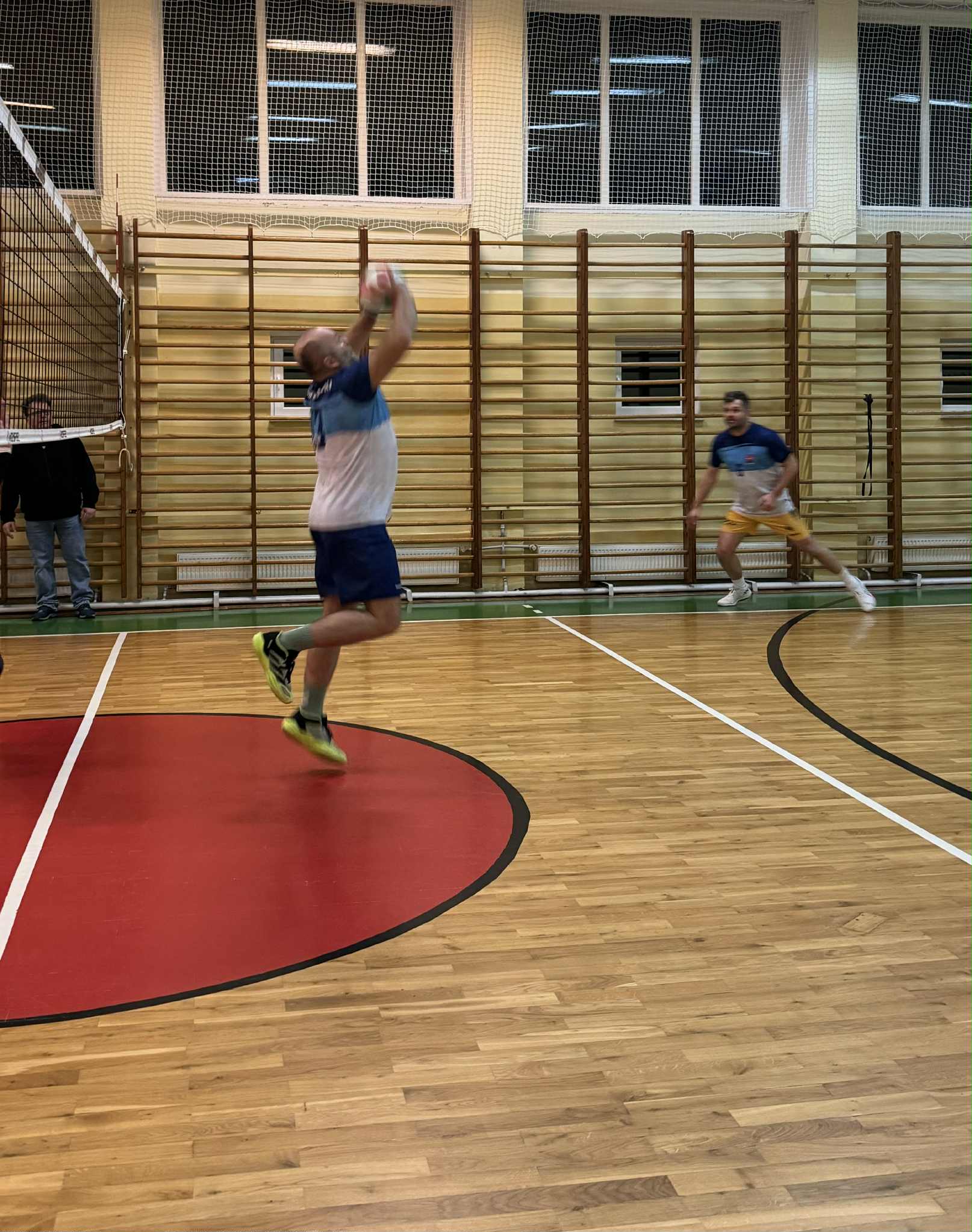 Drugi set przez długi czas przebiegał pod dyktando Powiatu, który utrzymywał 2–3 punktowe prowadzenie. Końcówka należała jednak do Volley Piątek. Kluczową rolę odegrał ponad dwumetrowy Kamil Płowaś, który kilkukrotnie zatrzymał rywali blokiem. Przy stanie 23:23 kibice zobaczyli akcję meczu – Jarek Stasiak efektownym blokiem, na wysokości około 350 cm, powstrzymał atak Karola Szymanka. Dla porównania – czołowi reprezentanci Polski, jak Maciej Muzaj czy Bartosz Kurek, atakują odpowiednio z pułapu 379 i 375 cm. Ta akcja wyraźnie podcięła skrzydła Powiatowi, który przegrał partię 23:25.