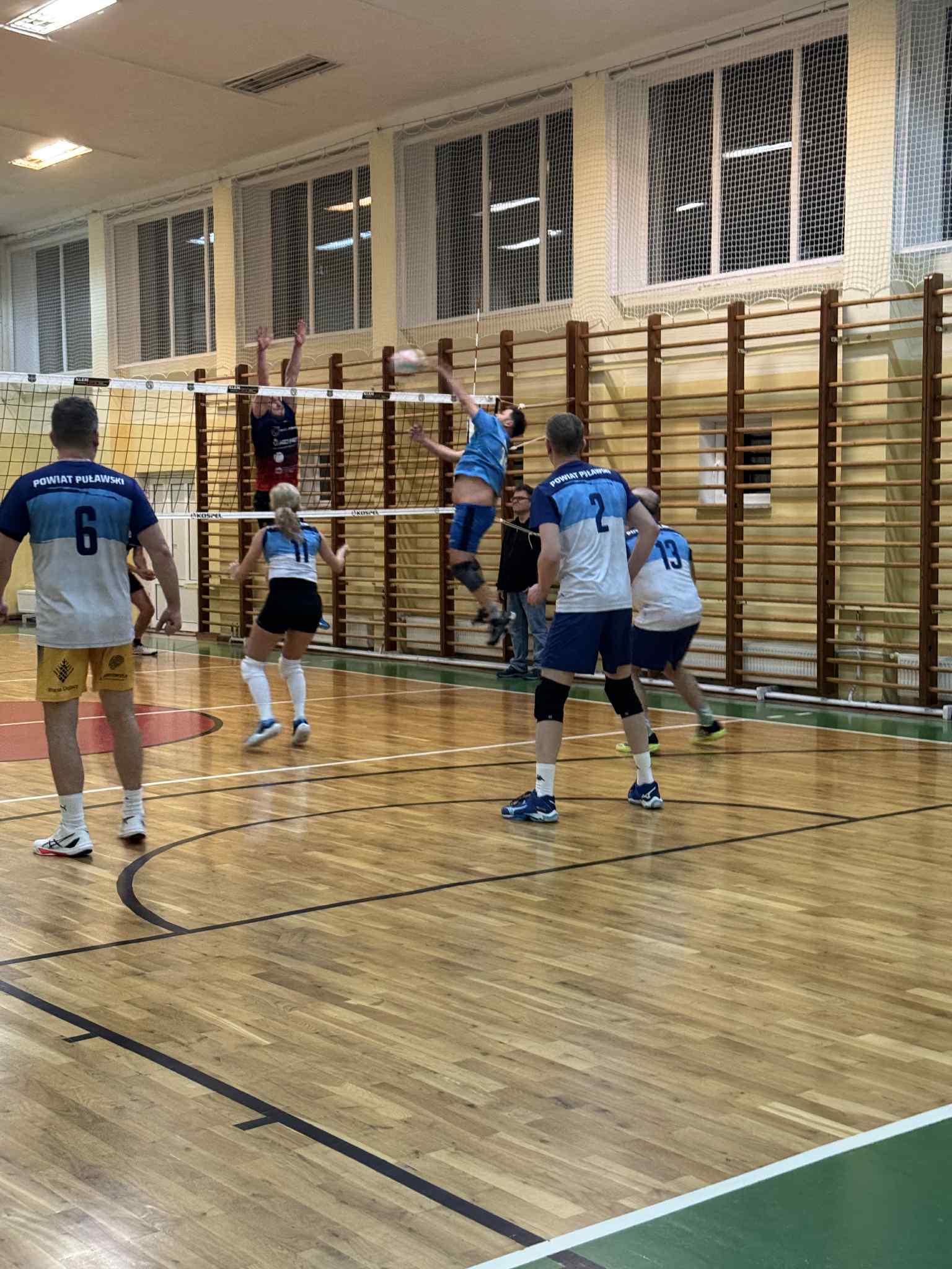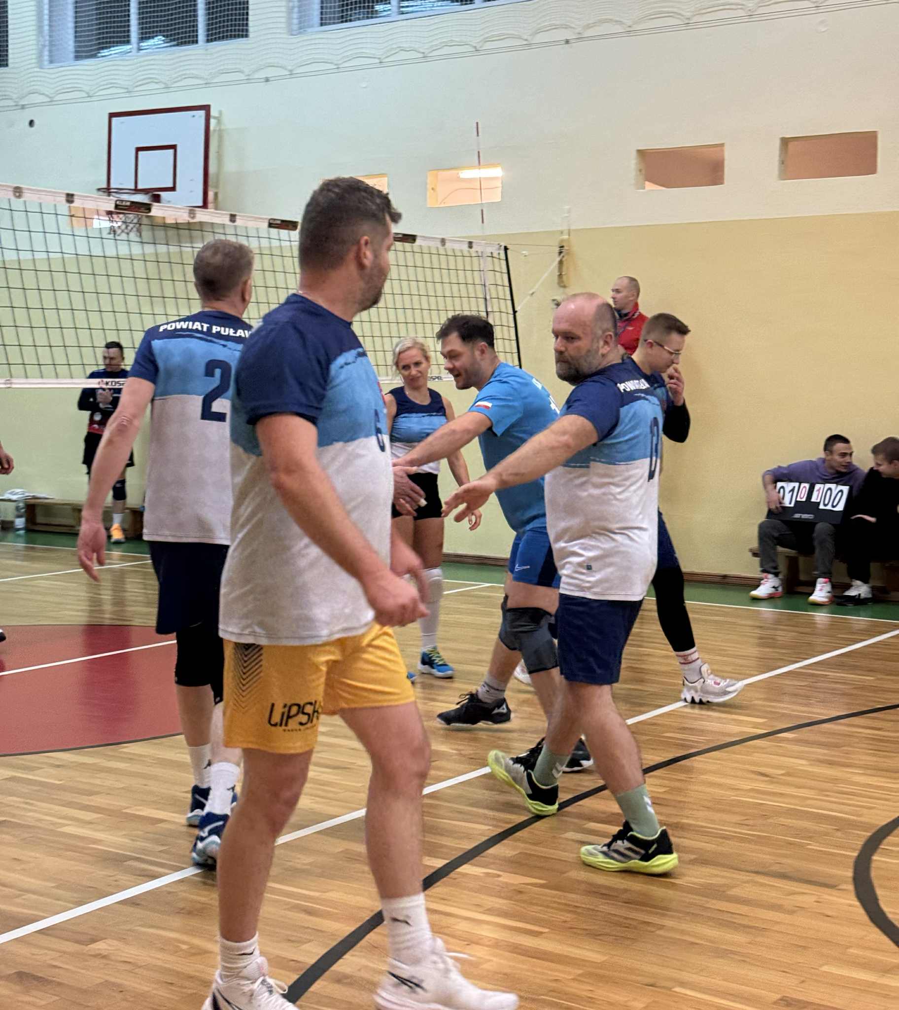 Pierwszą partię znakomicie rozpoczął Powiat Puławski. Równa gra we wszystkich elementach oraz skuteczność głównego atakującego Karola Szymanka pozwoliły wygrać seta 25:22. Drużyna prezentowała się bardzo pewnie, a Szymanek był najjaśniejszym punktem zespołu.